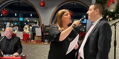 Bob has been our evening's highlight for many years. This year he also shared his beautiful song, "You Raise Me Up". Here Bob kicks off our singalong with his sister Liz McEntee.